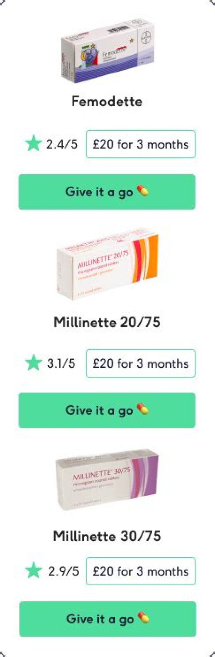 Can I buy Millinette 20/75 online? You can request and pay for a Millinette 20/75 prescription online. As this pill is a prescription-only medication, even if you are using an online service, you will need a prescription from a clinician before you can buy the treatment.
