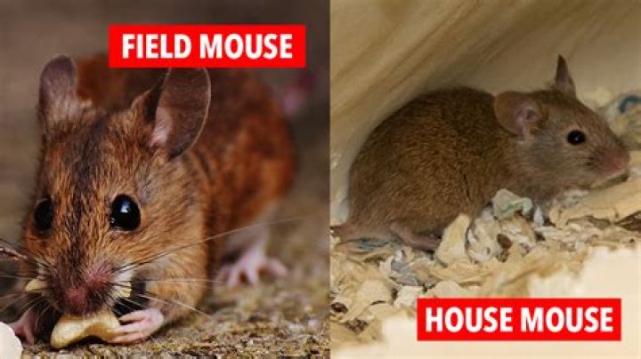 What's the difference between a house mouse and field mouse? The house mouse has a fair brown/grey coat with a pink tail and the field mouse has a sandy brown coat with a white/grey underbelly and dark tail with no fur underneath.