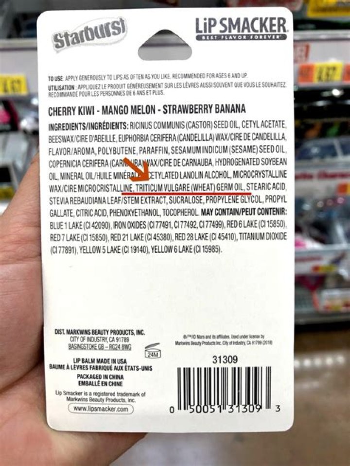 (7) Is Lip Smackers Gluten-Free? Lip Smackers lip balms are NOT gluten-free nor safe for anyone a gluten-free diet. The company clearly states on its FAQ page that its products contain gluten, and you can clearly see wheat germ on the product label as well. Again, not all Vitamin E is derived from wheat germ.