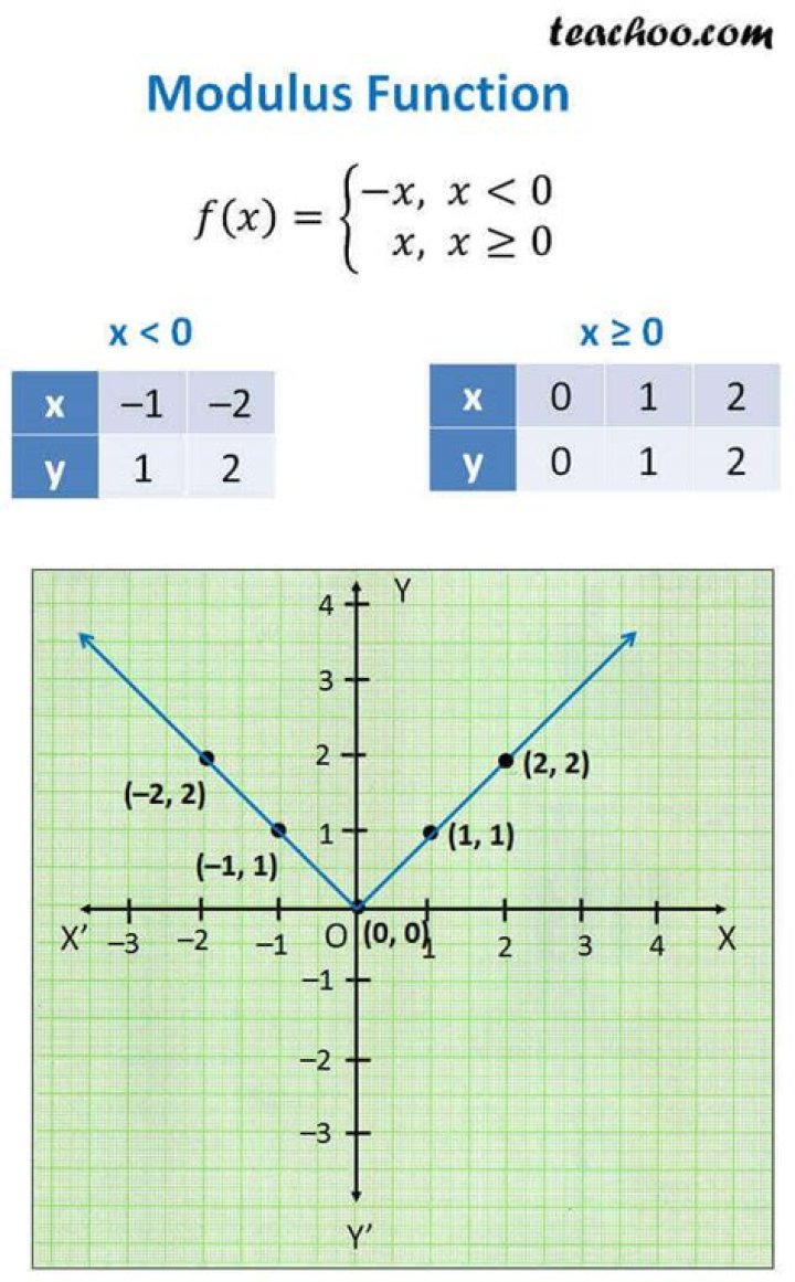 A modulus function is a function which gives the absolute value of a number or variable. It produces the magnitude of the number of variables. It is also termed as an absolute value function.