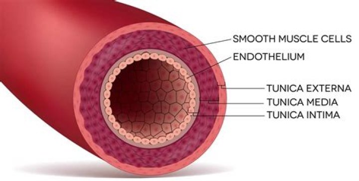 The tunica intima is the innermost layer and consists of a layer of simple squamous epithelium, known as endothelium, affixed to a basement membrane resting on a thin connective tissue matrix.