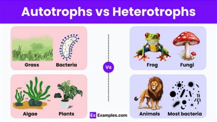 A heterotroph is an organism that eats other plants or animals for energy and nutrients. ... Autotrophs are known as producers because they are able to make their own food from raw materials and energy. Examples include plants, algae, and some types of bacteria.