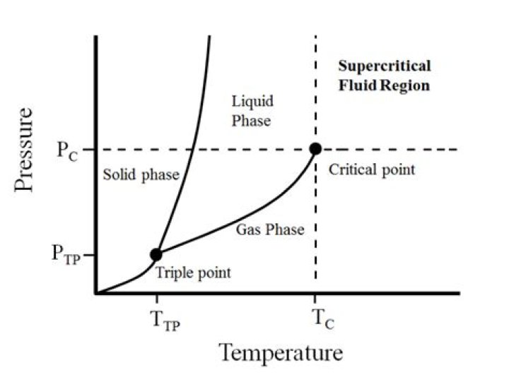 The triple point represents the combination of pressure and temperature that facilitates all phases of matter at equilibrium. The critical point terminates the liquid/gas phase line and relates to the critical pressure, the pressure above which a supercritical fluid forms.