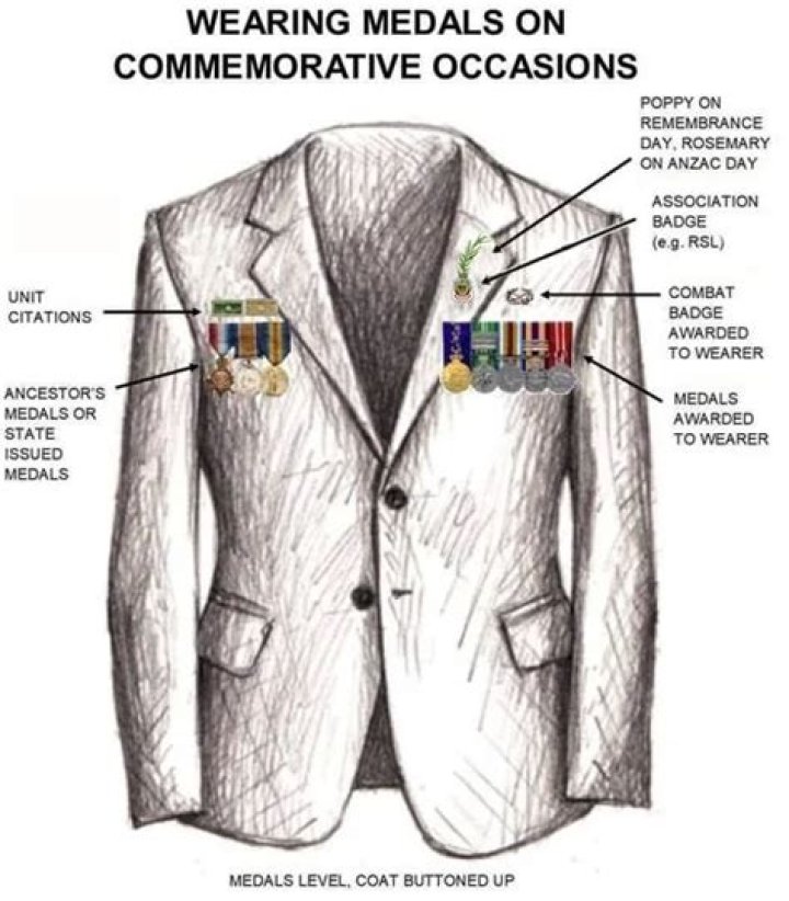 Miniature ribbons and medals can also be worn on a civilian suit at Veterans' functions, memorial events, formal occasions of ceremony and social functions of a military nature.