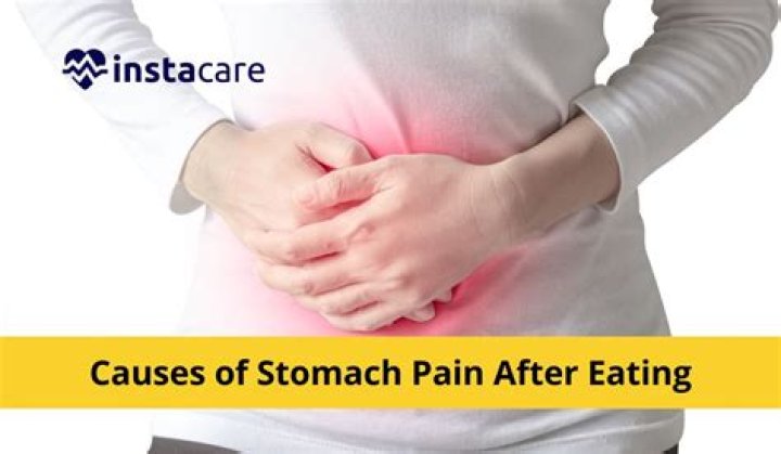 Stomach pain after eating can also be attributed to gallstones, eating spicy foods, a stomach flu, lactose intolerance, food poisoning, appendicitis, pelvic inflammatory disease, Crohn's disease, and peptic ulcers. Stomach pain after eating may also be the result of a blocked blood vessel.