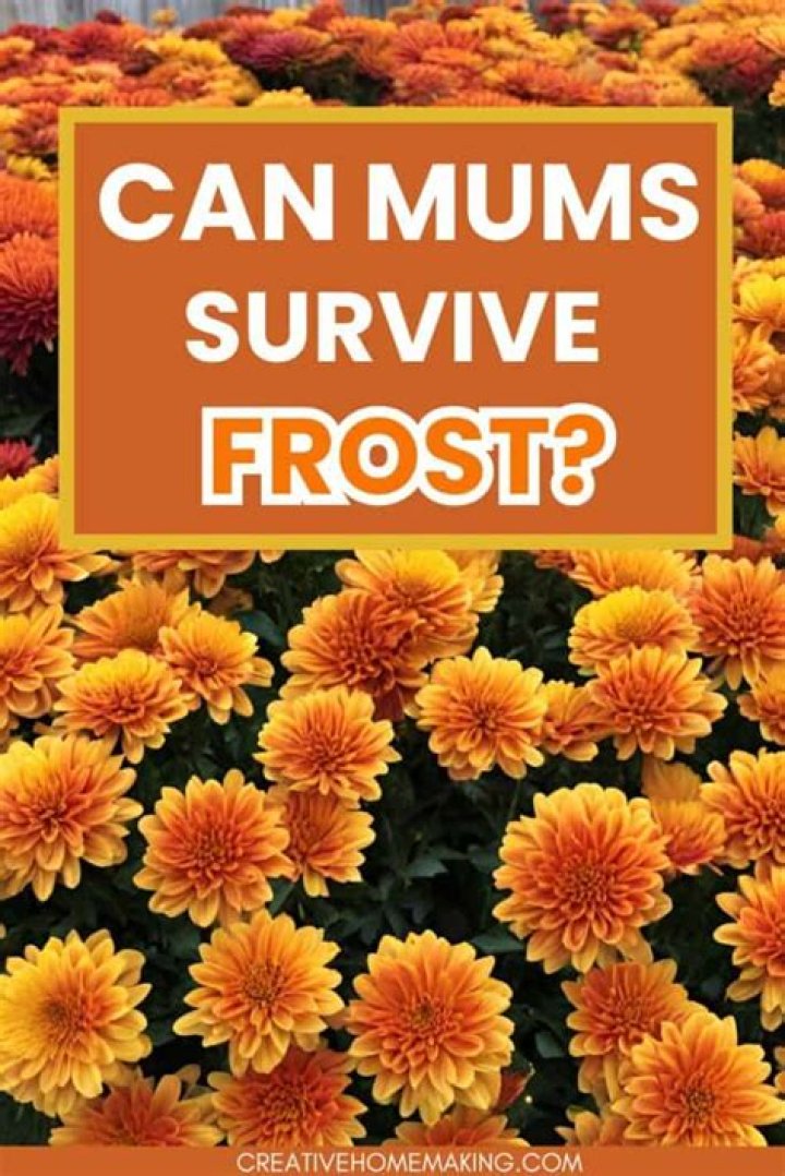 Most garden mums should be able to endure a light fall frost. Cover the plants at night when freeze warnings are in effect. ... However, if you are in a cold climate, leaving the dead foliage on the plants has been found to help the plant survive colder temperatures better than pruned plants.