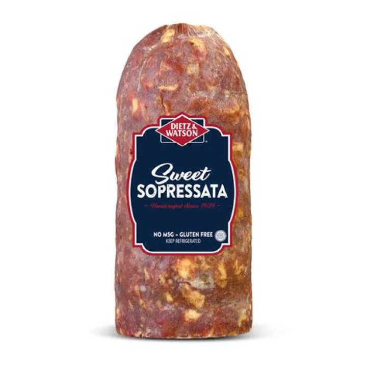 SOPPRESSATA DOLCE Soppressata is a dry-cured, fermented sausage found throughout Italy. Soppressata Dolce (sweet) is fantastic for slicing for a panini or added to your antipasto platter. The meat is coarsely ground, giving it an uneven, rustic appearance when sliced.
