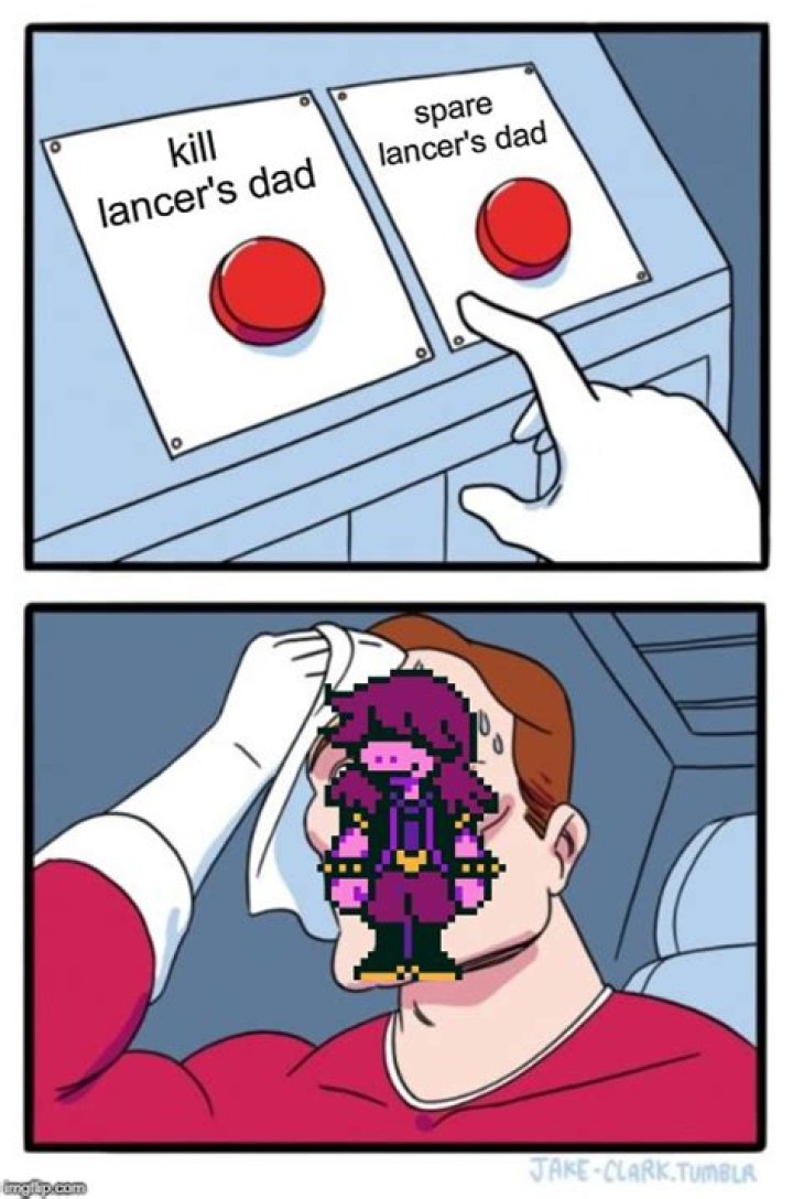 Queen became Lancer's mother after the events of Chapter 2, arbitrarily coming to this decision whilst talking to King. ... Lancer references to Queen as “girldad” to which Ralsei asks if he means “a mom” and Queen and him both share a laugh calling Ralsei “Peachboy.”