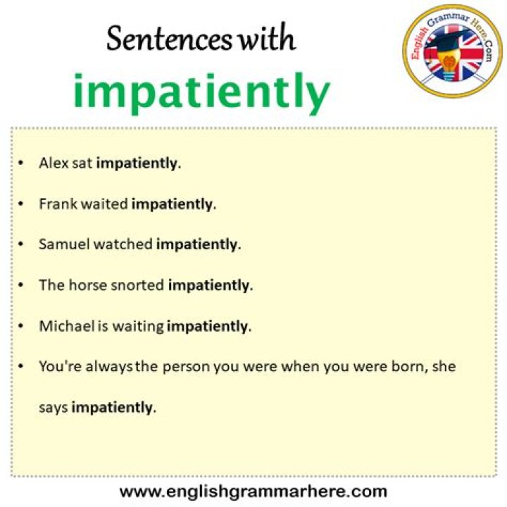 Impatiently sentence example. When he did not continue, she sat down impatiently , facing him. Lana asked impatiently , standing. Petya held his horse by the bridle, impatiently awaiting the order to mount.