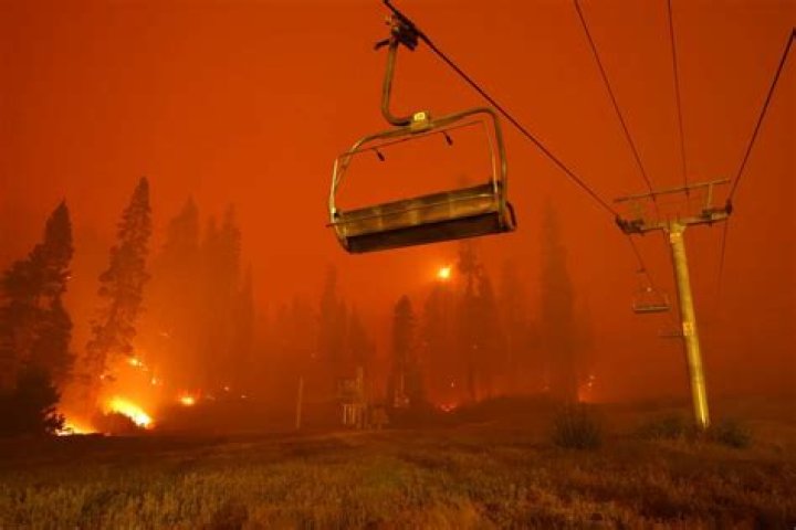 The Caldor fire in California burned through remote areas in the Sierra Nevada for two weeks and then descended toward the major population centers along Lake Tahoe. The fire spread to more than 186,000 acres and was 15 percent contained. Well, I heard it was coming over Echo Summit, so it's getting pretty close.