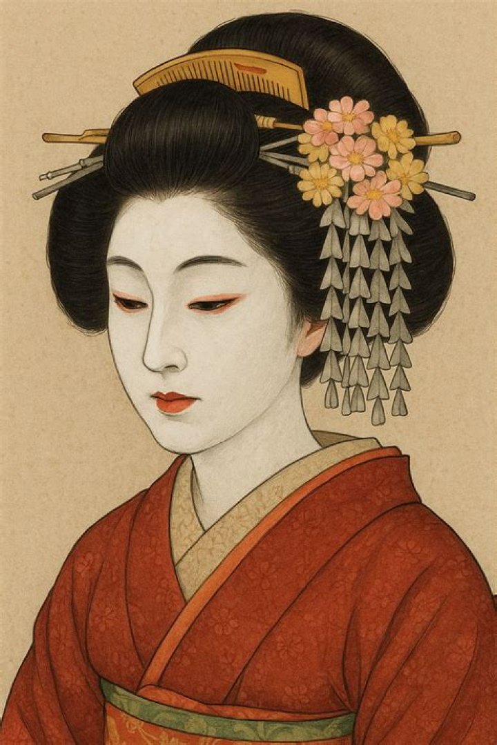 Until an apprentice (called maiko) becomes a geisha, she has to visit a hair dresser each week. Hair styles vary based on the geisha's rank. Full geisha wear wigs for banquets and special appearances. The rest of the time she can wear hair hair in a chignon.