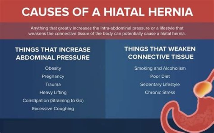 Although there is no exact cause to hiatal hernias, they can be linked to weakness of the hiatus, increased pressure on the abdomen from coughing, straining bowel movements, weight gain, or pregnancy can all lead to hiatal hernias. Both types of hiatal hernias are concerning if not treated quickly.