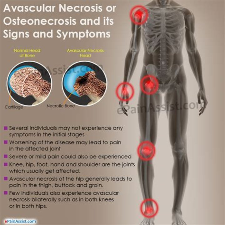 Avascular necrosis is a disease that results from the temporary or permanent loss of blood supply to the bone. It happens most commonly in the ends of a long bone. Avascular necrosis may be the result of injury, use of medicines, or alcohol. Or it may occur after bone injury or bone surgery.