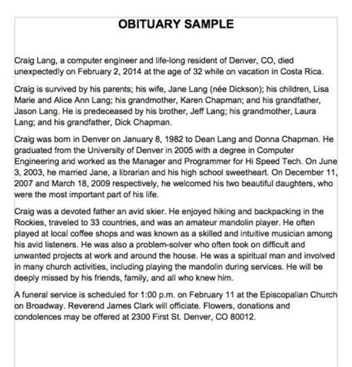 If asked to write an obituary, be sure to include:- The full name of the deceased, including nicknames.