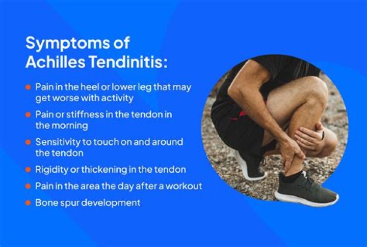 Common symptoms of Achilles tendinitis include:- Pain and stiffness along the Achilles tendon in the morning.
