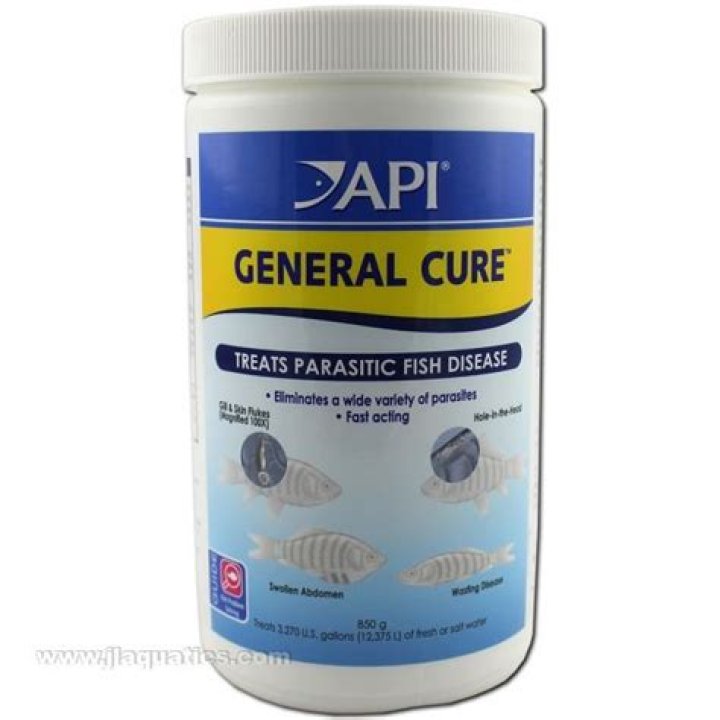 API® GENERAL CURE fish remedy treats a wide variety of parasitic diseases including velvet, fish lice, hole-in-the-head disease (Hexamita spp. & Spironucleus), gill & skin flukes (Dactylogyrus & Gyrodactylus ). For use in both freshwater and saltwater aquariums. This fish remedy will not color the aquarium water.