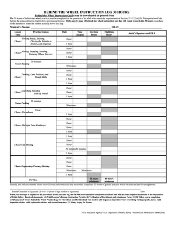How many driving hours are my students required to verify on the log? 50 hours of supervised driving time are required, 15 of those must be nighttime hours. The 6 hours a student will complete during the behind-the-wheel lessons DO NOT COUNT.