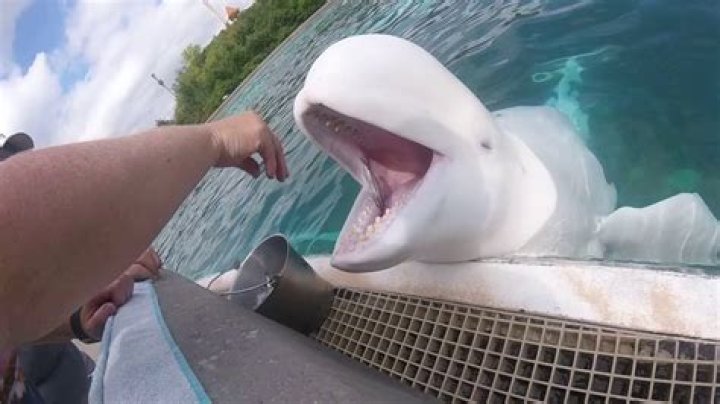 According to Dr. Lori Marino, a beluga behavior specialist withThe Kimmela Center, the animal's behavior is “absolutely definitively aggression.” “The open mouth and posturing are typical of the way cetaceans express aggression and I've seen a lot in captivity in the very same circumstances.