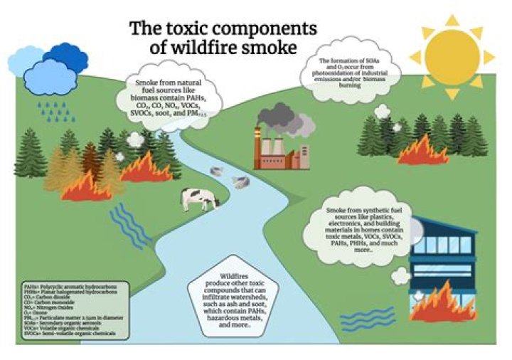 Wildfire smoke is made up of a complex mixture of gases and particles produced when wood and other organic materials burn. ... That means the heart, brain and the rest of the body are not getting the amount of oxygen they are used to, which in turn makes you feel sleepy.