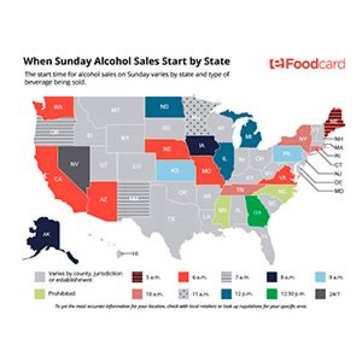 Mostly, the alcohol sales start at noon and stop at 12 am to 2 am in those states. For instance, hours on Sunday start between 12 noon and 1 pm and stop at 12 am, and 2 am in Georgia, Kentucky, Michigan, Nebraska, West Virginia, and Texas.