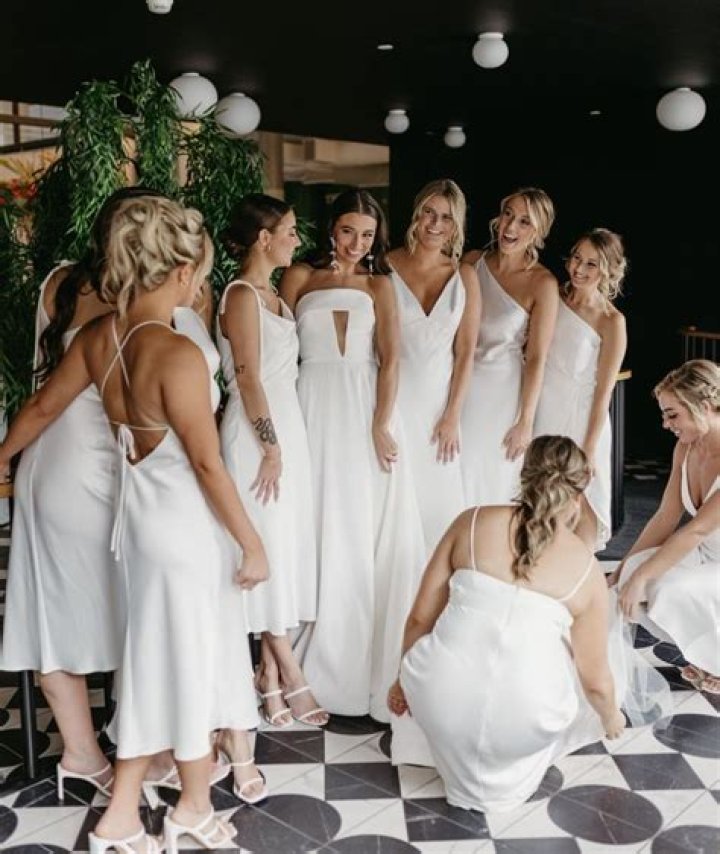White. ... Eighty percent of brides wear white to their wedding, and it's important that a bride stands out at her wedding. Even if it isn't the intent, a guest wearing white can be seen as an attempt to upstage the bride—and that's definitely a no-no.