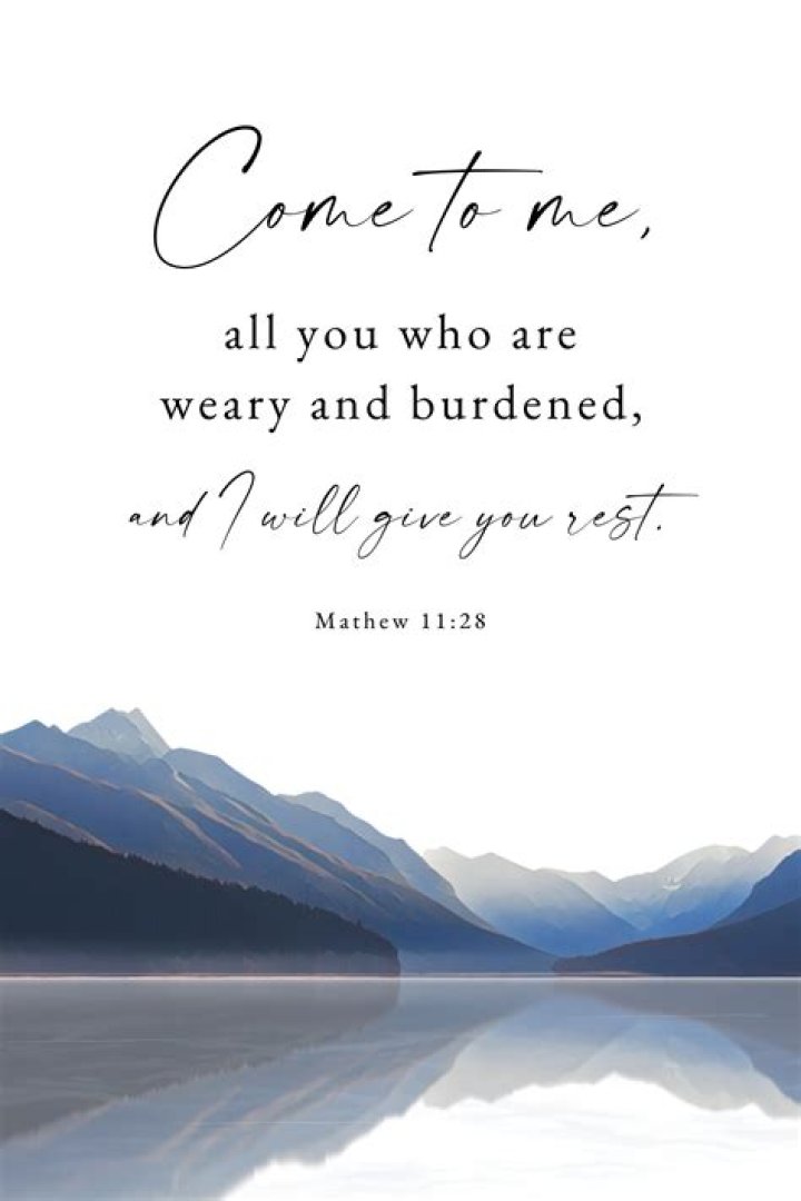 "Come to me, all you who are weary and burdened, and I will give you rest. Take my yoke upon you and learn from me, for I am gentle and humble in heart, and you will find rest for your souls.