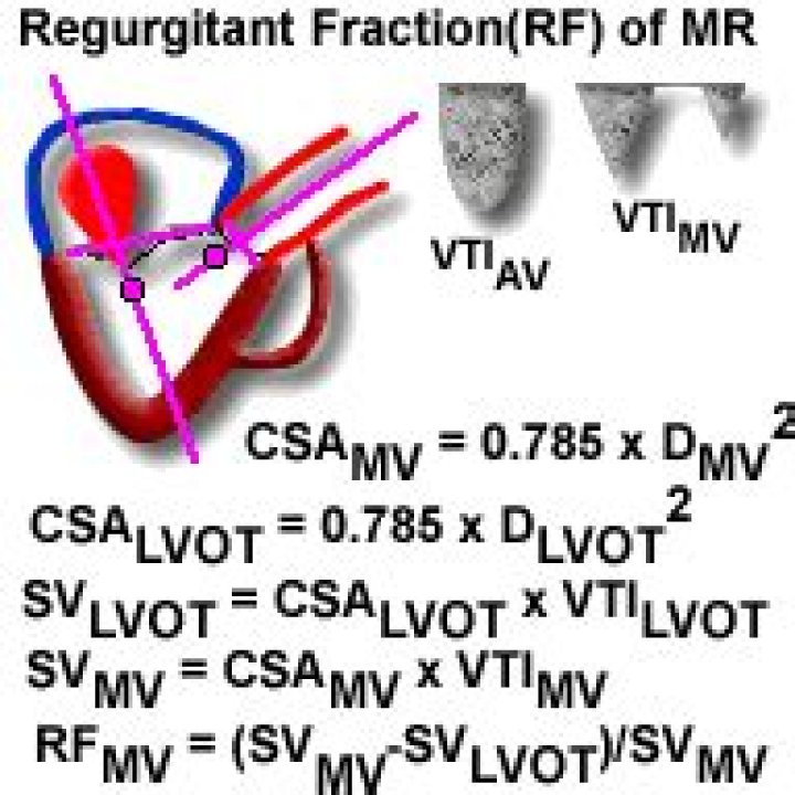 MVSV = π (mid-diastolic mitral annulus radio)2 × VTI MV The regurgitant fraction is thus defined as: RF = RSV / MVSV Then, LVEF is corrected as: cLVEF = LVEF × (1-RF).