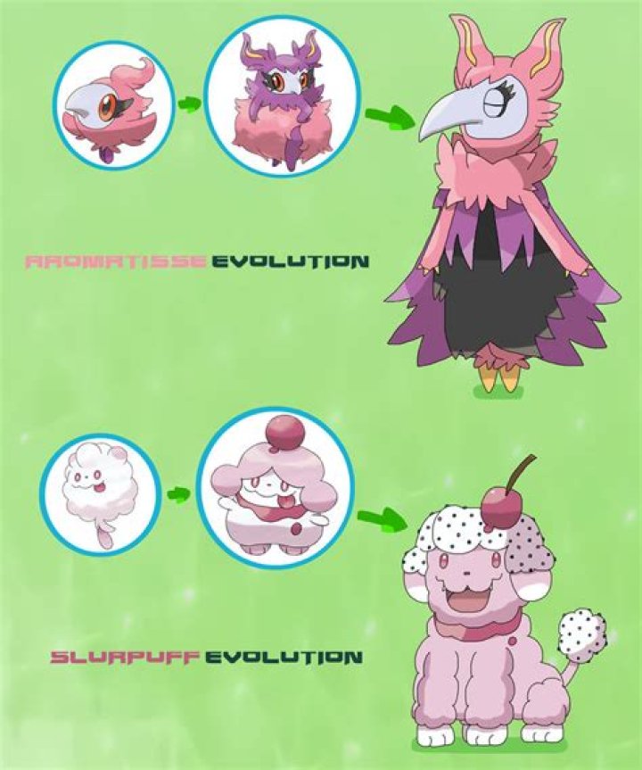Aromatisse (Japanese: フレフワン Frefuwan) is a Fairy-type Pokémon introduced in Generation VI. It evolves from Spritzee when traded while holding a Sachet.