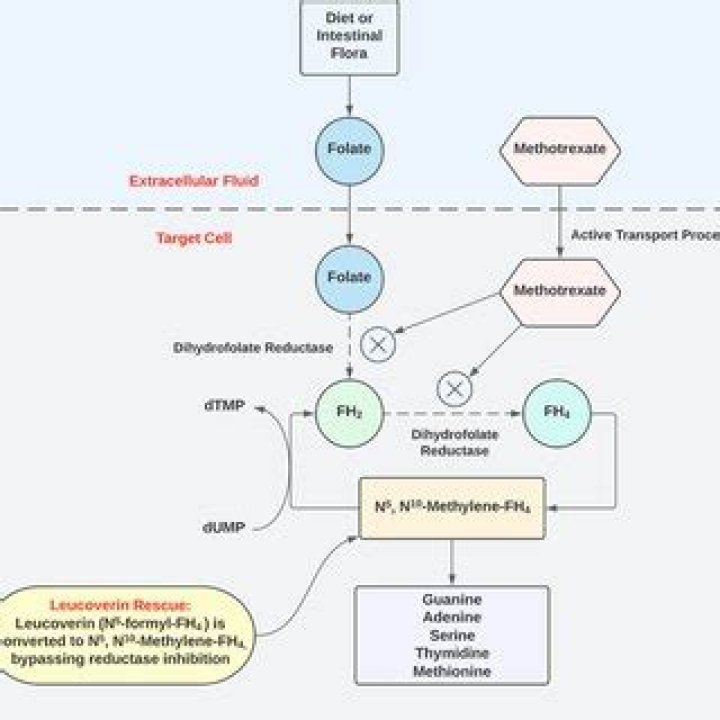 As a derivative of folic acid, folinic acid is useful as an antidote to folic acid antagonists (i.e., methotrexate, pyrimethamine). [6] Frequently referred to as “leucovorin rescue,” folinic acid is used to counteract the toxic effects of high-dose methotrexate therapy.
