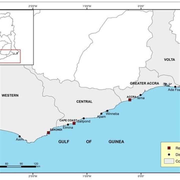 There are four administrative coastal regions, namely Volta, Greater Accra, Central and Western Regions.