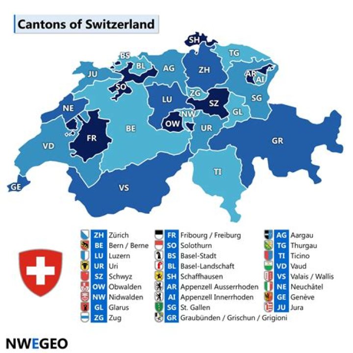 German is by far the most widely spoken language in Switzerland: 19 of the country's 26 cantons are predominantly (Swiss) German-speaking. French is spoken in the western part of the country, the "Suisse Romande." Four cantons are French-speaking: Geneva, Jura, Neuchâtel and Vaud.