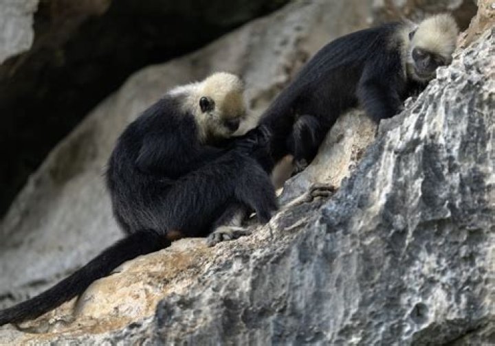 Francois's langurs (Trachypithecus francoisi), also known as the Tonkin langur and the Tonkin leaf monkey, live in the forests that grow along the steep ledges of limestone mountains, known as karst, which are a signature of the landscape of northern Vietnam and southern China.