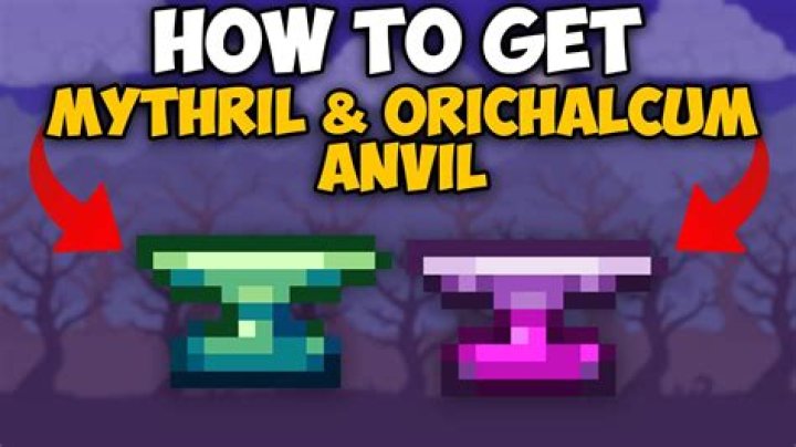 1 Answer. To make a Mythril Anvil, you need to have 10 Mythril bars in your inventory (made from 40 mythril at a furnace). Then, stand next to an iron or lead anvil and you will be able to craft it!