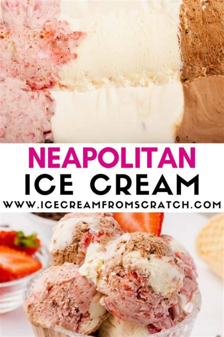 Neapolitan ice cream – also called Harlequin ice cream – is composed of three flavors. They are chocolate, vanilla, and strawberry that are arranged side by side without packaging in between them. It is said to have originated from Naples, Italy.
