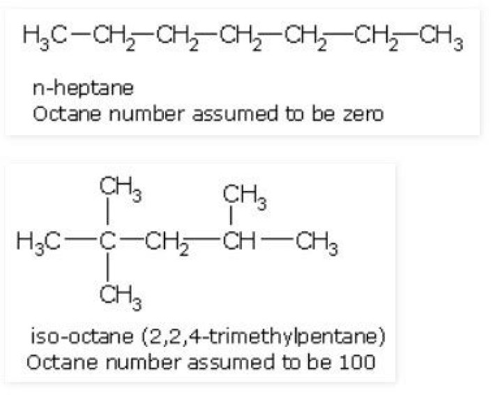 – n-Heptane (C7H16) has a octane number 0, – iso-octane (C8H18) has a octane number 100.
