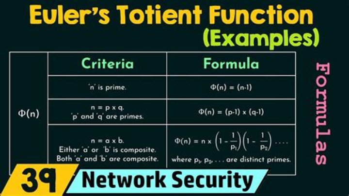 Euler's totient function is a multiplicative function, meaning that if two numbers m and n are relatively prime, then φ(mn) = φ(m)φ(n). This function gives the order of the multiplicative group of integers modulo n (the group of units of the ring. ). It is also used for defining the RSA encryption system.