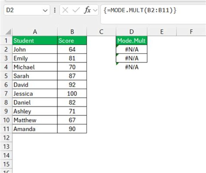 - In each selected cell, MODE. MULTI will return a mode value if one exists.