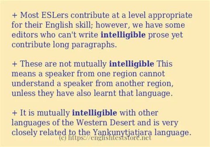 In this page you can discover 24 synonyms, antonyms, idiomatic expressions, and related words for intelligible, like: understandable, plain, easily-understood, clear, comprehensible, apparent, definite, distinct, lucid, perspicuous and unmistakable.