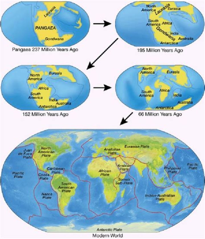 When Pangaea broke up, the northern continents of North America and Eurasia became separated from the southern continents of Antarctica, India, South America, Australia and Africa. The large northern continent is called Laurasia and the southern continent is called Gondwanaland.
