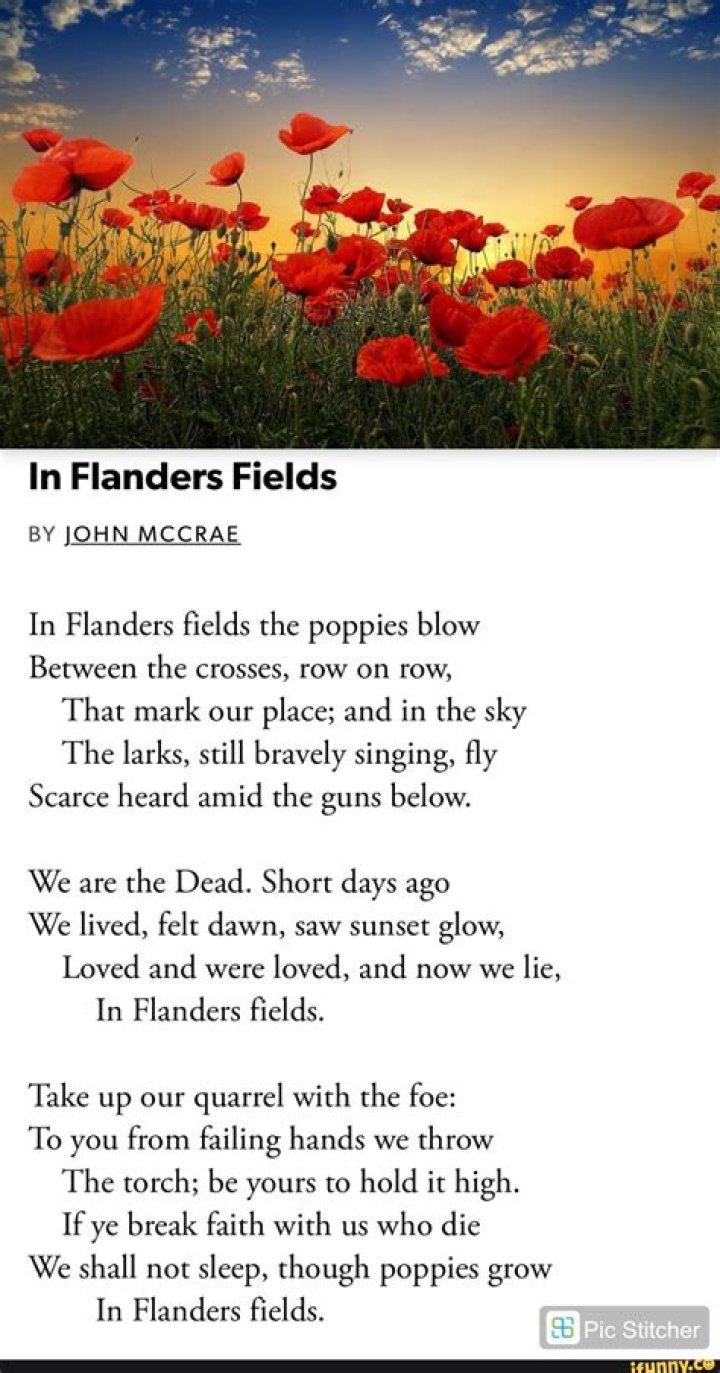 In Flanders Fields- In Flanders fields the poppies blow. Between the crosses, row on row, That mark our place; and in the sky. ...