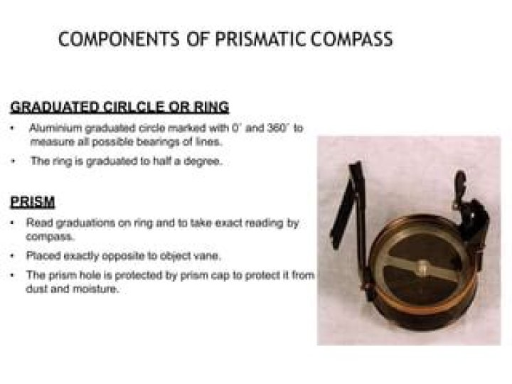 A prismatic compass is a navigation and surveying instrument which is extensively used to find out the bearing of the traversing and included angles between them, waypoints (an endpoint of the lcourse) and direction. ... The compass is generally used to run a traverse line.