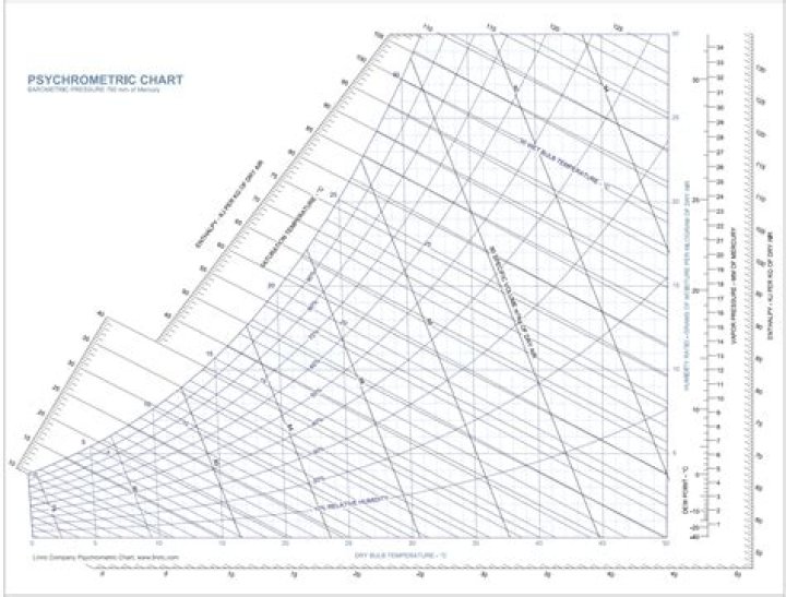 Psychrometric charts are complex graphs that can be used to assess the physical and thermodynamic properties of gas-vapour mixtures at a constant pressure. They are often used to assess the properties of moist air.