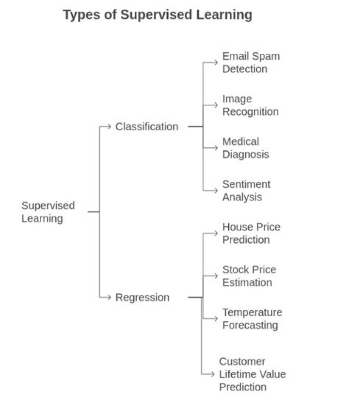 Supervised learning is typically done in the context of classification, when we want to map input to output labels, or regression, when we want to map input to a continuous output.