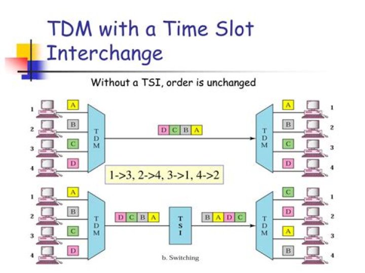 When a communication link is shared by time-division multiplexing, time is divided into frames. Each frame is divided into time slots that are allocated in a fixed order to the different incoming channels.