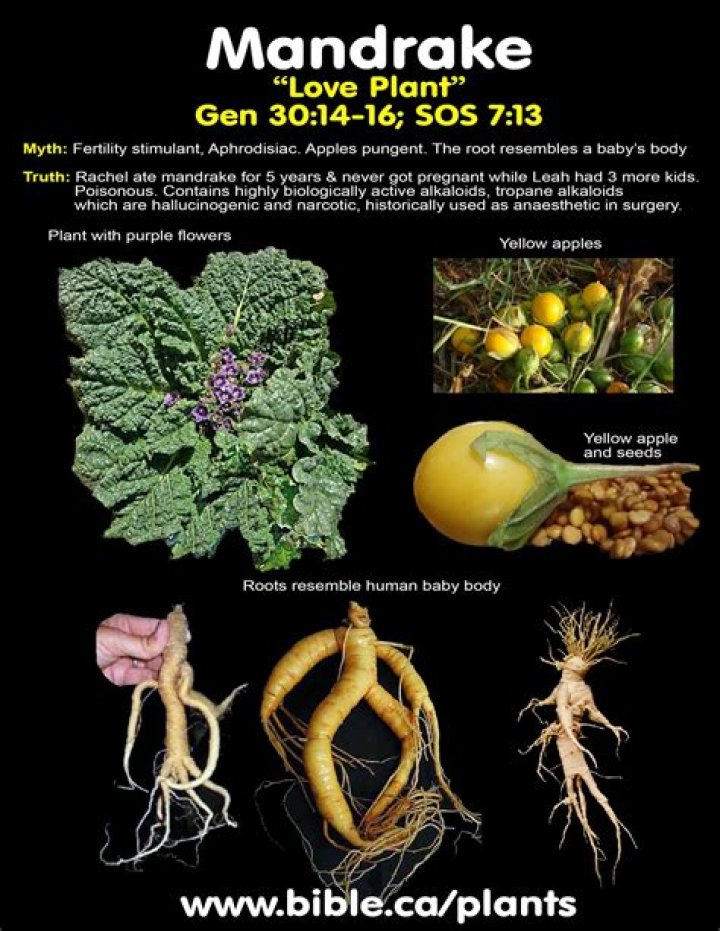 Mandrake is mentioned in the Bible (Gen. 30:14-16) and its Biblical use is generally attributed to its supposed fertility power. ... It seems that the Scripture clearly connects the fragrance of mandrake with sexuality, which is the only known account of direct link between odor and human sexual response.