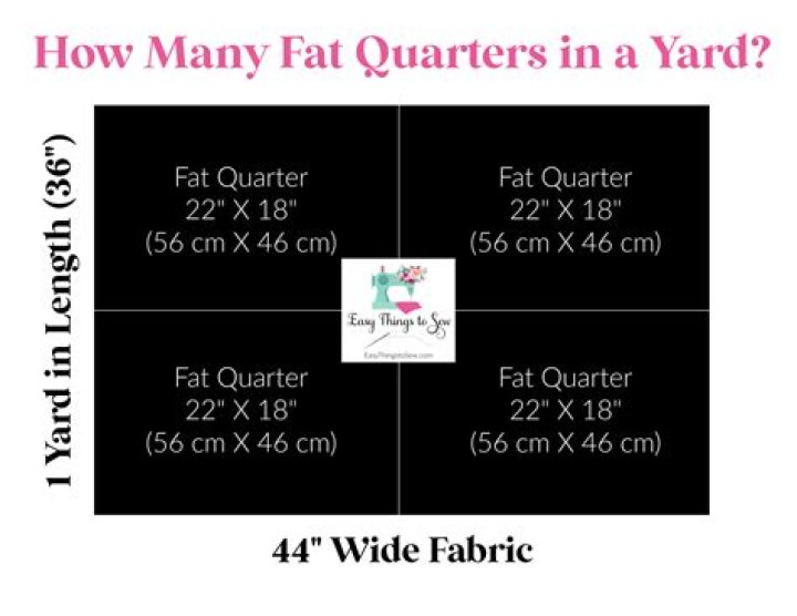 For those fabrics that are not too small or too wide, the average fat quarter is 1/4 of a yard. That means that you can get 4 fat quarters in a yard. But there is a caveat to that, that yard of material needs to be 44 to 45 inches wide to get 4.