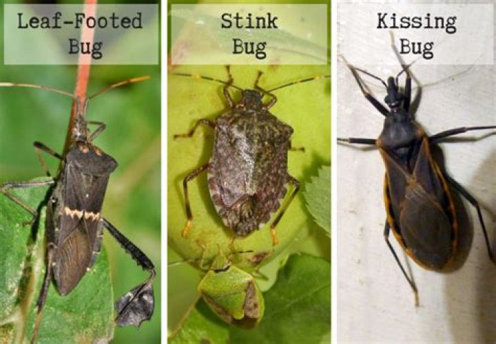 Kissing bugs look similar to stink bugs, but stink bugs are typically smaller and lack the red, orange, or yellow stripes of color that you can see on kissing bugs.