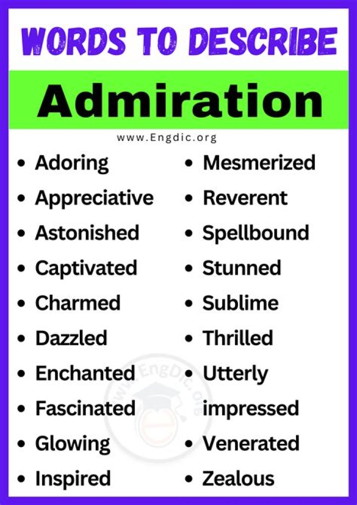 Admiration is the feeling of liking and appreciating, like your admiration of your older sister. ... Often, there is a sense of gratitude or thanks when someone feels admiration. For example, your admiration for a favorite teacher includes an awareness of how much he or she helped you.