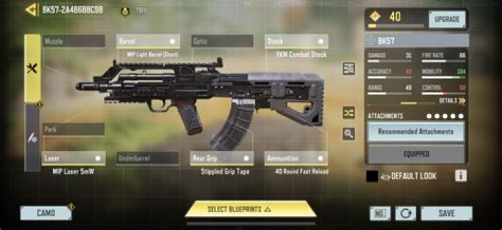 The best attachments for the BK57 are Quickdraw, Foregrip, and Extended Mags. Quickdraw keeps your aim snappy and Foregrip keeps you on target. The BK57 is rather disappointing because of its low damage range.