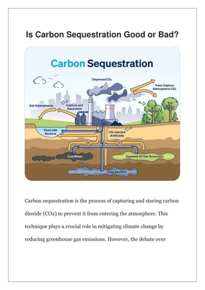 Carbon sequestration is a natural or artificial process by which carbon dioxide is removed from the atmosphere and held in solid or liquid form. Carbon sequestration can be good for the environment because it can prevent or stop global warming.